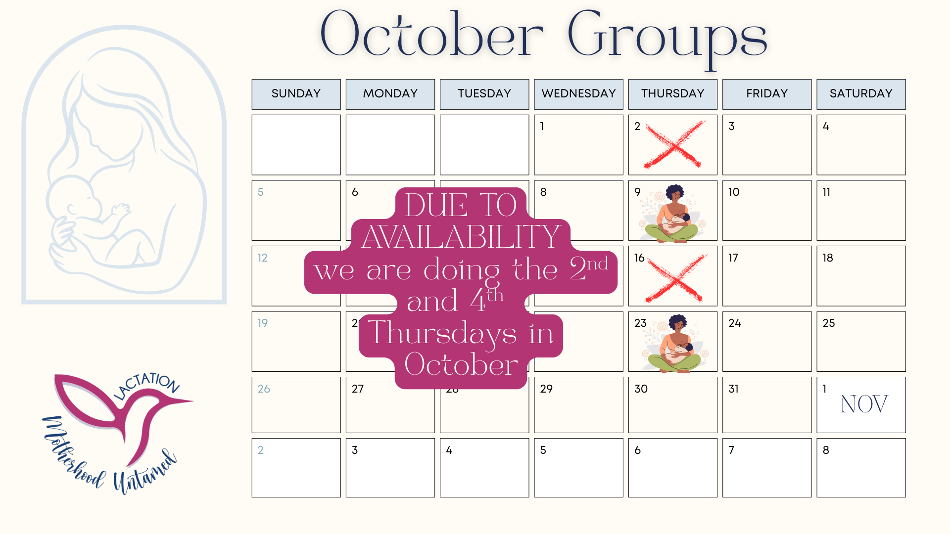 Any group cancellations or changes are announced on Motherhood Untamed Lactation’s social media platforms found here.